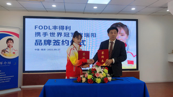 2021年9月17日,FODL豐得利VS世界冠軍席瑞陽品牌簽約儀式在南京盛大舉行,儀式正式簽約席瑞陽為廣州豐得利實業(yè)公司形象代言人。